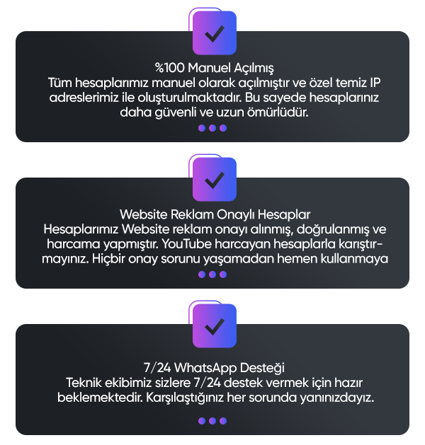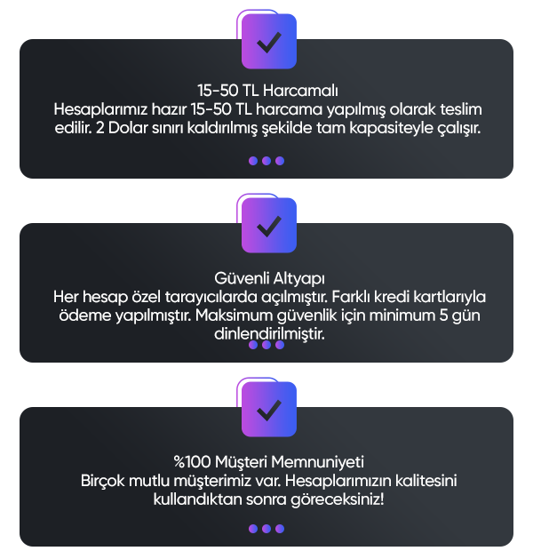 Hesaplar %100 tamamen manuel olarak, premium tarayıcılar kullanılarak açılmaktadır.