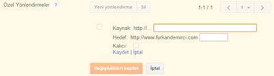 Burada kaynak, yeni bağlantı adresinizi temsil eder. Hedef ise nereye yönlendireceğinizi belirler. Örneklerle anlatıma devam etmek istiyorum.