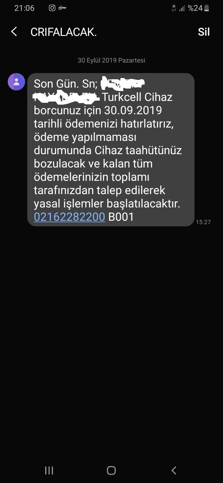 Telefonun borcu bitti ise ve bu mesaj olayını türkcell e sordu ise bu numara kesinlikle **************