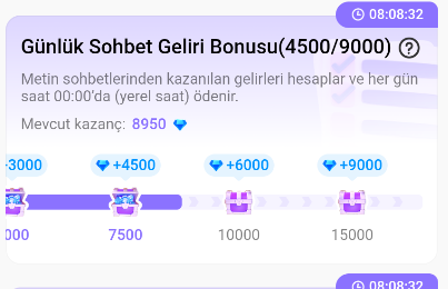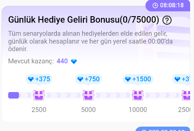Kişilerden alacağınız her hediyeye göre ekstra gün sonunda ödüllendirilirsiniz , 10 binlik bi hediye aldığınızda 1500 ve bu şekilde katlanarak ödülller alıyorsunuz.