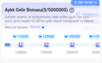 Her ayın son gününe kadar ses+hediye+mesajlaşma toplamının yüzde 10 u oranında ekstra ödül kazanırsınız
