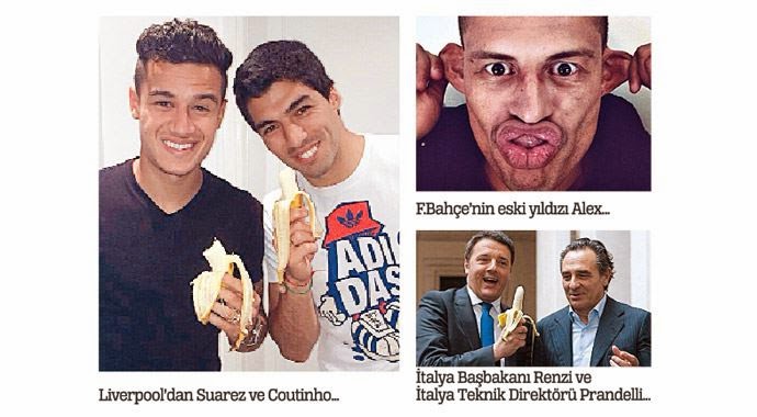 Irkçılığa karşı tepki sadece spor camiasından gelmiyor. İtalya Başbakanı Renzi’nin muz yerken fotoğrafını yayınlamasıyla beraber. Twitter’a hemen herkes muz yerken fotoğraflarını, #HepimizEşitiz #IrkçılığaHayır hashtagleri ile yayınlamaya başladı.