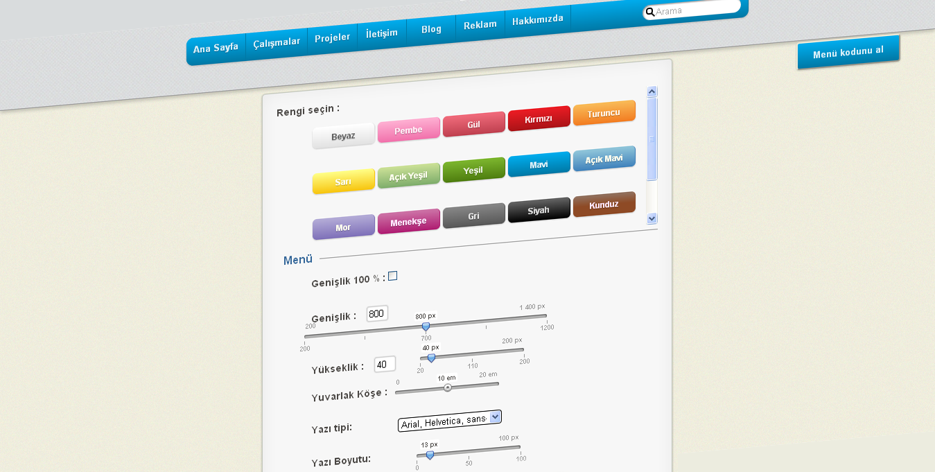Kaynak: Online CSS3 jQuery Menü Oluşturucu
