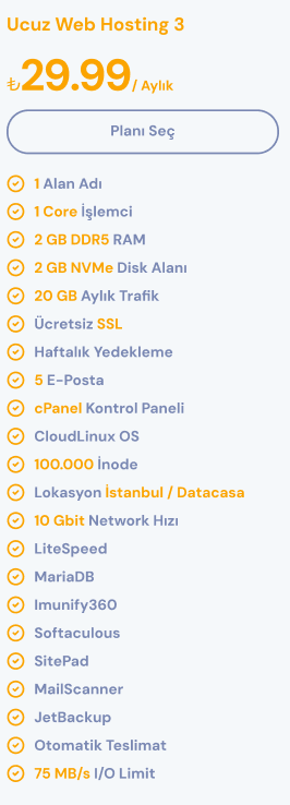 Hosting Paketlerimizde Up/Down Tespit edilirse uyarı yapılmaksızın suspend edilir.