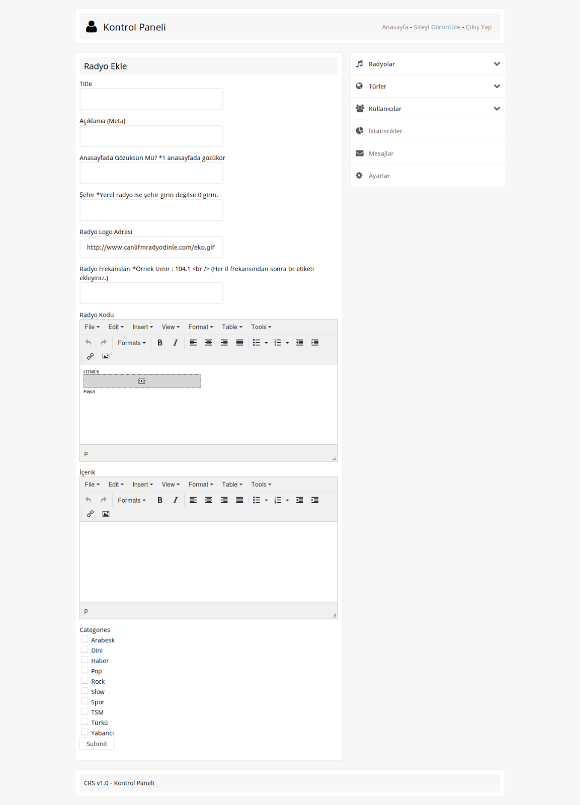 - Radyo logolarını sadece url şeklinde ekleyebilirsiniz.