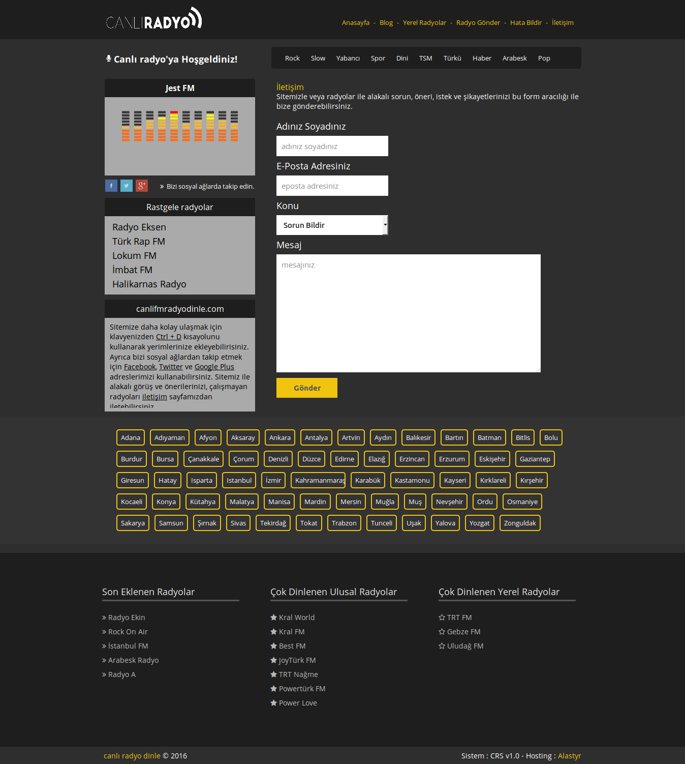 Merhaba arkadaşlar geçen yıl kendi projem için hazırlamış olduğum canlı radyo dinleme sitesi scriptini uygun fiyata satışa çıkarıyorum. Canlı önizleme adresi kısa süreliğine mevcut ve admin paneli için demo sistemi olmadığından sadece fotoğraflarını paylaşıyorum. Veritabanı ücrete dahildir fakat çalışmayan radyolar olabilir ve hemen kurup yeni bir projeye başlayacaksınız radyo içeriklerini yenilemeniz kopya içerik açısından yararınıza olur.