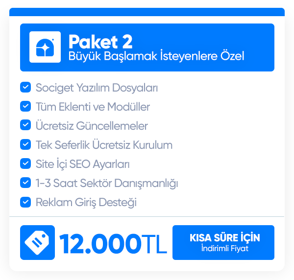 Paket 2 kapsamında sektöre girişiniz ile beraber paket satış sitesi için profesyonel yönetim, anlayış ve reklam becerilerine net olarak sahip olmuş olursunuz.