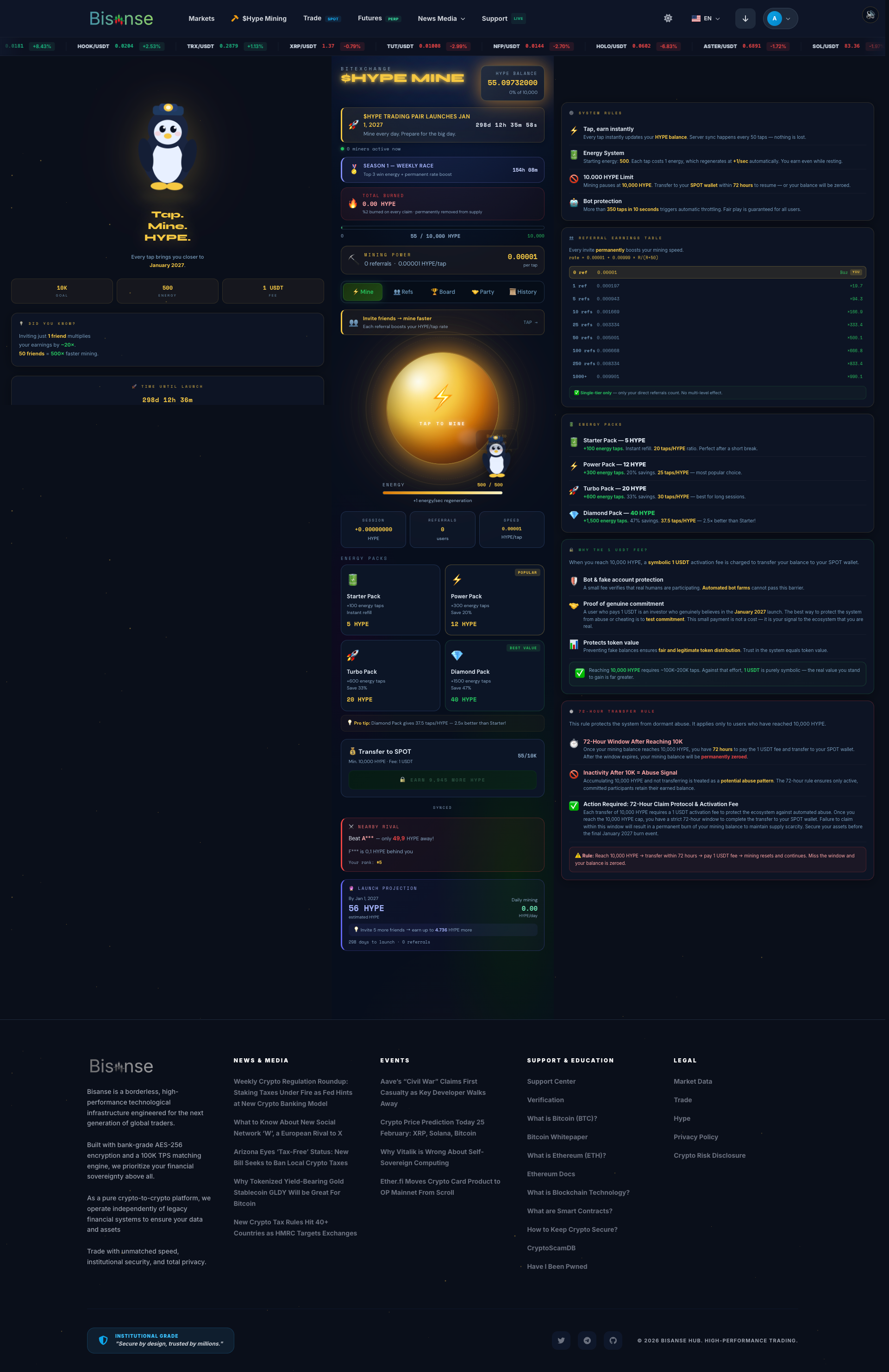 - Telegram Mini App Entegrasyonu: Kullanıcıların uygulamayı indirmesine gerek kalmadan Telegram üzerinden erişebildiği, Tap-to-Mine ($HYPE) mekanizması ile günlük ödüller kazandığı devrimsel bir onboarding süreci.