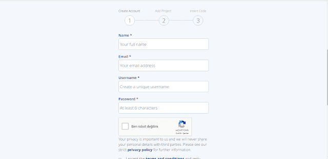 Kayıt sayfasını doldurduktan sonra size bir kod verecek ve bunu sitenize ekleyin. Eğer benim gibi blogger kullanıyorsanız kodu ekleme işiniz biraz daha farklı olacak. Bu işlem yazıyla anlatılamayacağından video çekmişler. Videoyu izlerseniz tek seferde yapabilirsiniz. Blogger kullananlar bu videoyu izleyip aşamaları uygulayabilir: https://www.youtube.com/watch?v=wOxX8rOVJv0