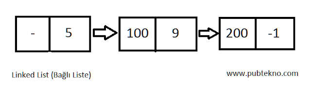 Bağlı listeyi 2 satır ve n sütunlu bir matris olarak düşünün. Her sütunun ilk elemanı saklamak istenilen değeri 2. satırdaki elemanı ise bu elemandan sonra gelecek olan elemanın hangi satırda olduğunu göstersin.